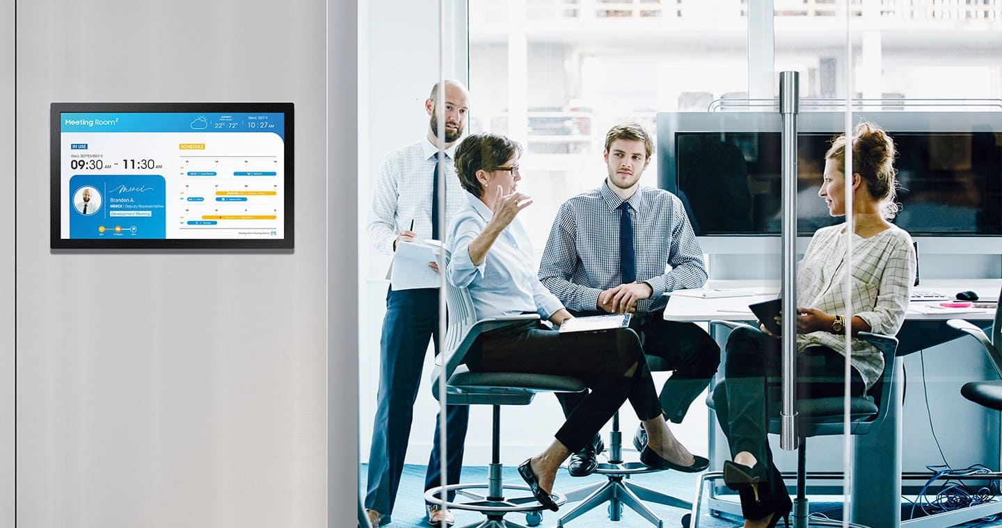 - Для гостиниц и бизнес-центров, имеющих конференц-залы, которым требуется современное отображение информации о проводимых мероприятиях на электронных табличках залов и сводных табло расписаний, использующих в качестве системы управления Samsung MagicInfo.