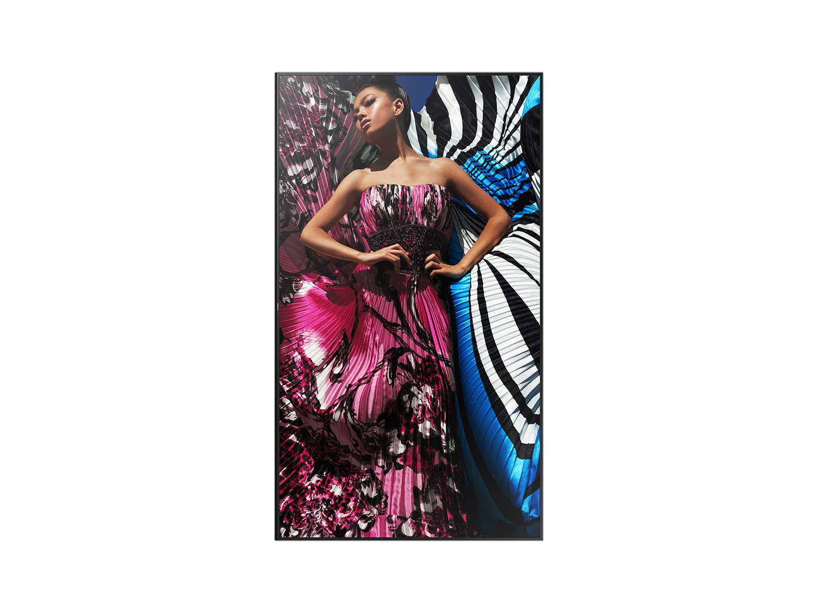 Серия QMF обеспечивает четырехкратное разрешение FHD на одной и той же области экрана, что обеспечивает максимально точное воспроизведение деталей. Текст, отображаемый в серии QMF в формате UHD, очень четкий из-за высокой плотности пикселей. Визуальные элементы с высокой детализацией, такие как фотографии и видео, видны в мельчайших подробностях для невероятно реалистичного и захватывающего визуального восприятия. Кроме того, клиенты могут заменить старые видеостены, состоящие из дисплеев FHD меньшего размера, одним большим дисплеем серии QMF, чтобы создать цельный вид контента. Видеостена, составленная из четырех дисплеев FHD покрывается одним дисплеем UHD.